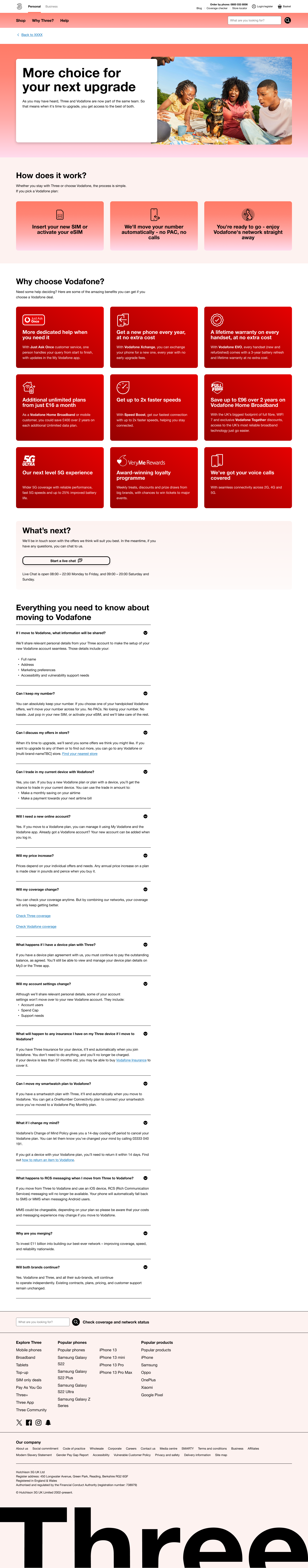 With the merger process with Vodafone was in progress, the business was choosing the customers whether to stay or switch to Vodafone. This was part of a campaign that will migrate customers to the new business, though both companies, Three and Vodafone do run on the same network. An email will be sent out to all Three customers - it is an informative campaign email that highlights the progress that was being made to combine both networks for better coverage. A link in the email will open a new web page that will explain the benefits of joining Vodafone, the great un-locked deals that are awaiting and to address any concerns that my occur.