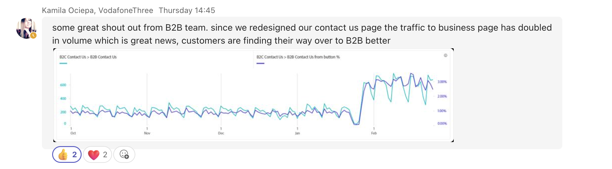 A good review we received from the B2B team that Business customers were finding even easier to access to the B2B contact page after landing on the commercial page.